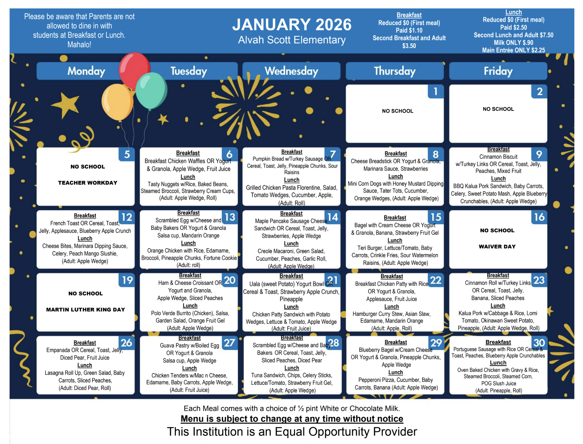 Happy New Year... 2026!! Here is the January Cafeteria Menu.